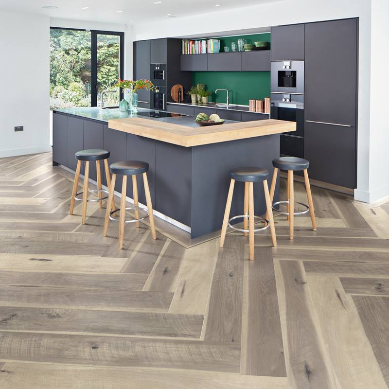 The stark colour variation in American hickory produces a dramatic effect when used in flooring. The pale sandy tones of the outer sapwood stand out against the darker heartwood creating a striking and attractive look in any room. Inspired by the weathered appearance of reclaimed planks sourced from the American Midwest, the contrasting greys bring a different dynamic to any interior. Featuring subtle cross-sawn marks found in the reclaimed timber, this hickory design gives character to a room without overpowering.