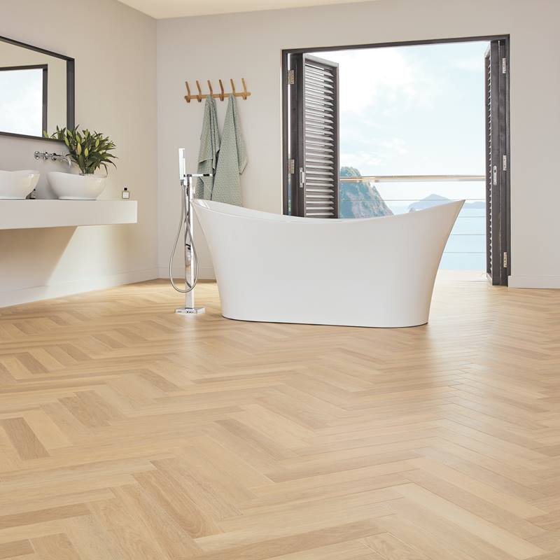In this 18” x 3” parquet format, Savannah Oak can be laid on its own in a herringbone style, or used in combination with larger planks (see RL23) or our matching Quadrant border for a more striking look.