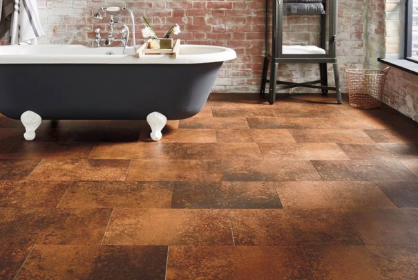 Molten is one of a group of tiles inspired by weathered steel. Its vivid orange colouration is tempered by darker, speckled elements that reflect the effects of oxidisation and weathering. This creates a striking floor that carries the cool, industrial feel of metal yet with the warmth underfoot and ease of maintenance you expect from Karndean.