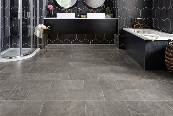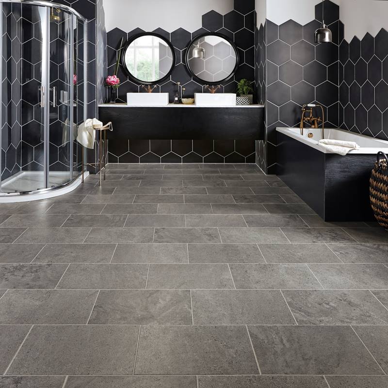 Inspired by the classic structure and timeless appeal of limestone, Drift reproduces the grain and fossilisation of the natural stone in a far darker palette. Greys and blacks combine to create a softer alternative to single tone dark stone floors.