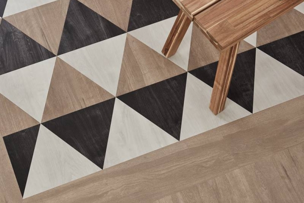 This classic Pyramid design paired with three bold contrasting hues from our Van Gogh collection creates a truly unique floor. You can lay this floor as a rug effect with a matching full plank to highlight or zone out furniture or all over for more drama.