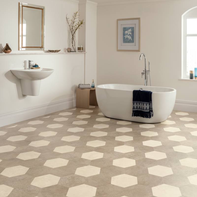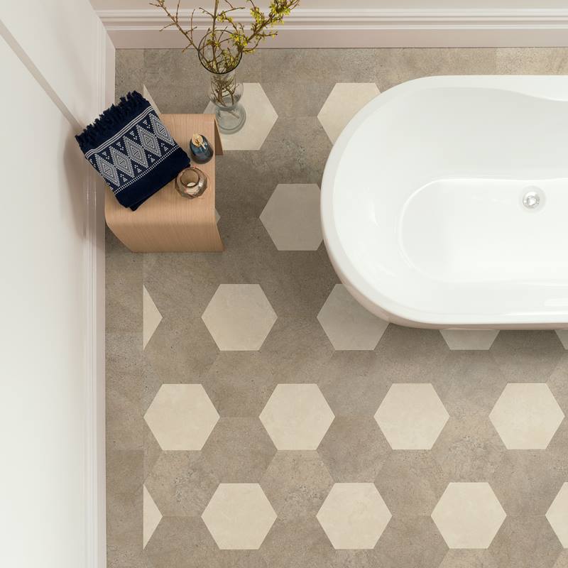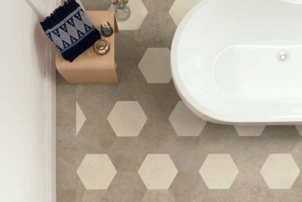 The contemporary hexagon design paired with the subtle grey tones of Portland Stone and cool white of Balin stone make this Hexa option ideal for adding a modern feel to any space.