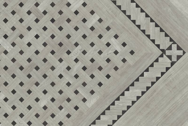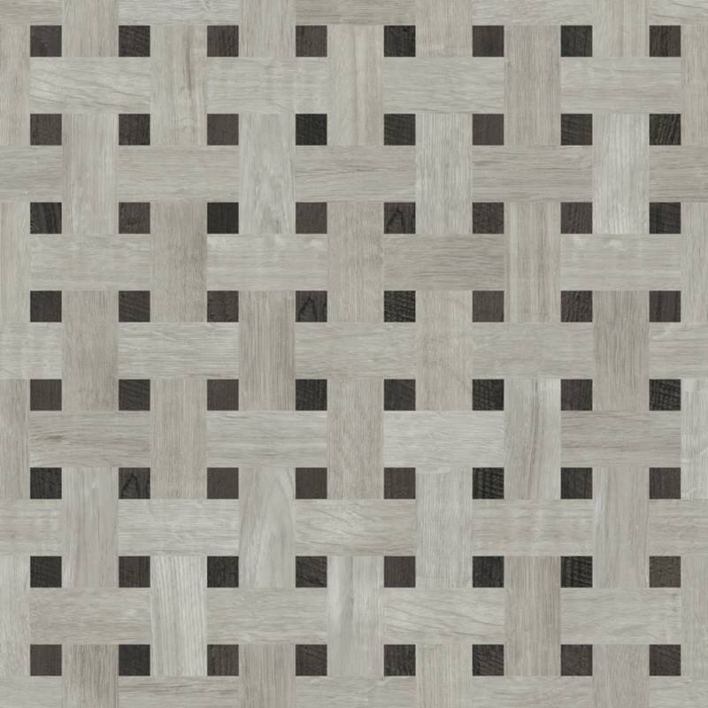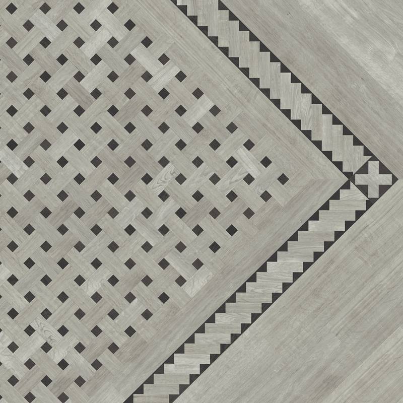 Taking a twist on the traditional woven look this design pairs the cool grey tones of Grano with the dark contrast of Carbo both from our Opus collection. Pair this design with its matching domino border for a real statement floor.