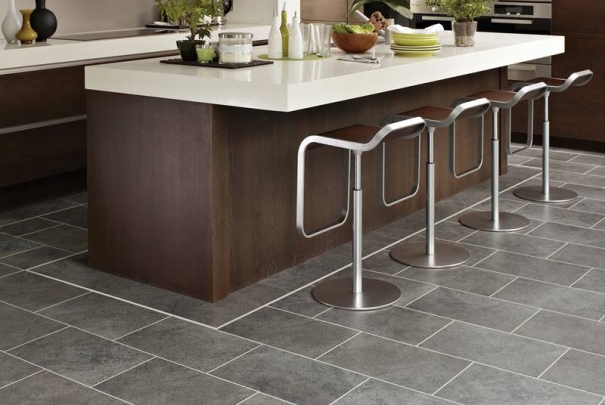 One of the darkest tiles in our Knight Tile collection Cumbrian Stone combines smoky charcoal and carbon tones in a contemporary wider scale tile format. Because of its darker colouring and durability this floor is very practical for pets and is easily personalised with corresponding design strips and Mosaic or Macintosh borders.We are proud to be listed as the only approved Karndean Platinum Retailer in the areas where our stores are situated. Read more about. Karndean flooring and how Carpet Barn and The Bed Store Platinum Retailer status benefits you.