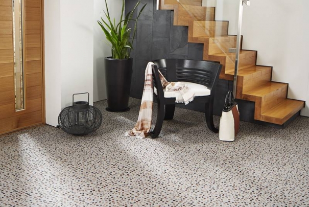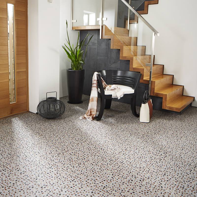 Like the other Spanish Pebble effect tiles in this Iconic Designflooring collection, Catalonian granite couples pebbles with a light grey concrete effect backdrop, all delivered in a highly realistic and tactile surface finish.